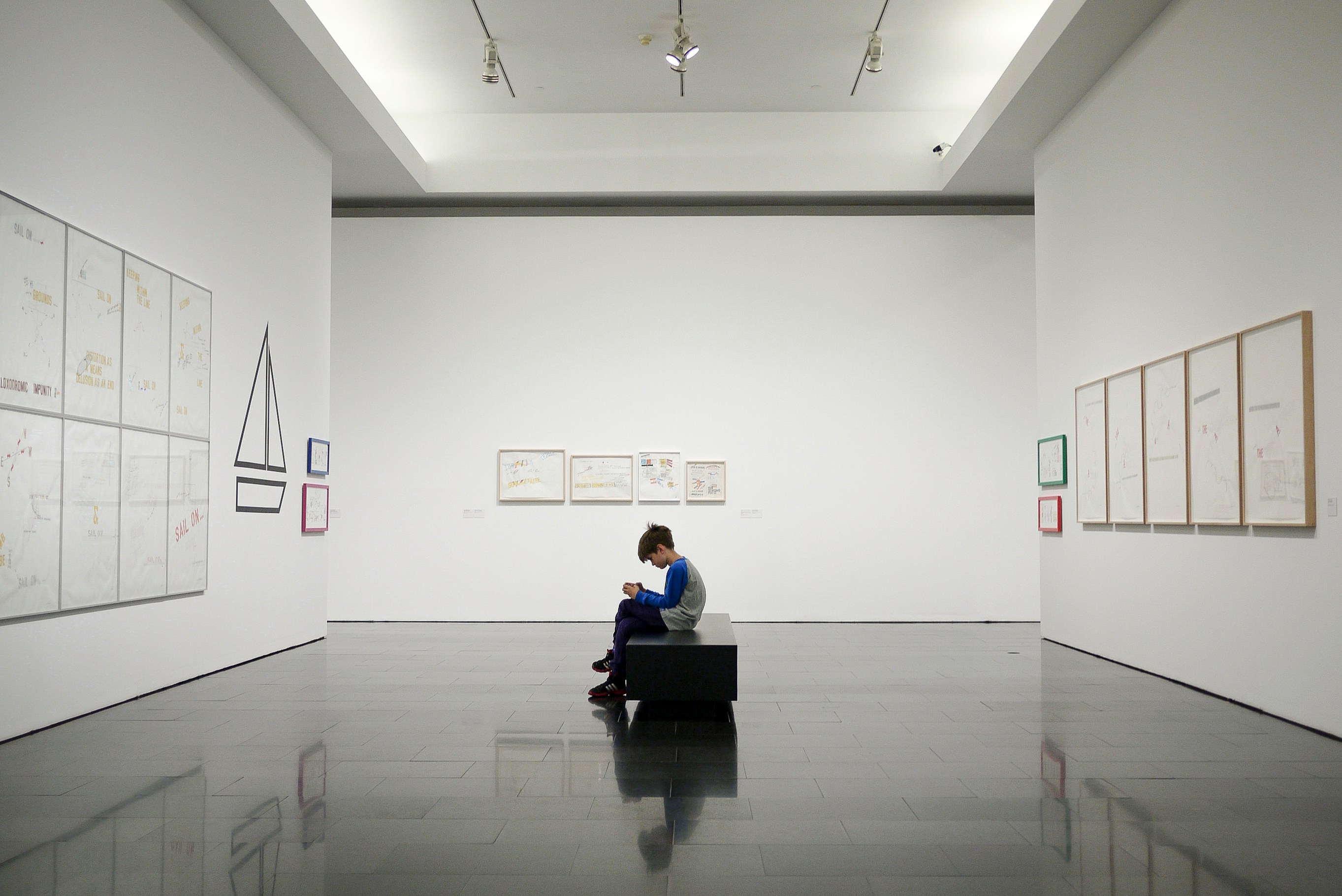 Comfortable seating area with modern furniture for visitors to relax and contemplate the artworks.