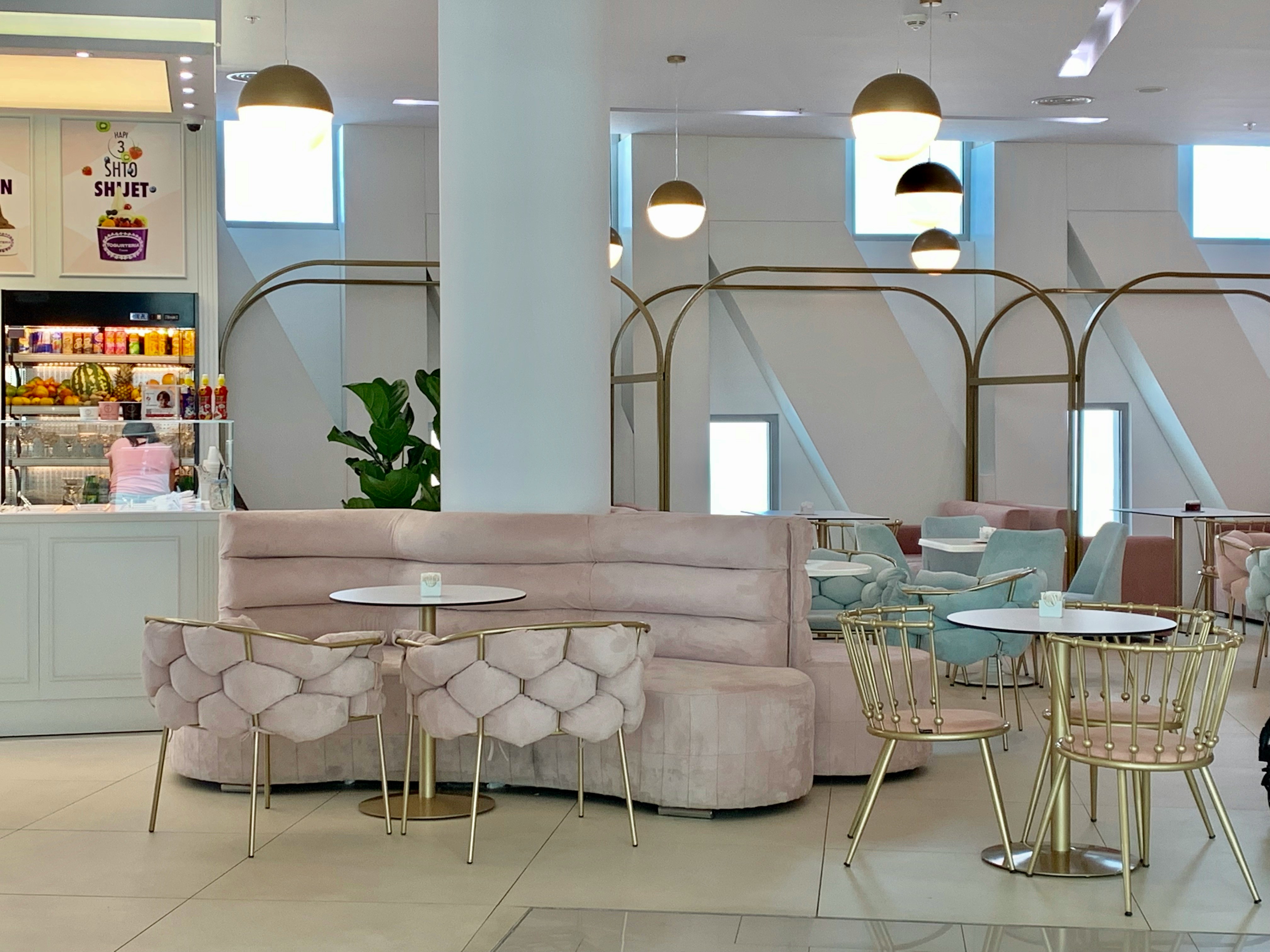 Stylish cafe and lounge area offering refreshments and a place for visitors to discuss the exhibits.